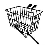 Wald 198 Front Bicycle Basket (14.5 x 9.5 x 9, Black)Product Description: This versatile basket is the most adaptable front basket we offer. The two-piece adjustable legs extend up to six inches*. The legs can be mounted to either the fork axle or the eyelets. This basket also features longer handlebar clamps for greater clearance when mounting.