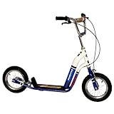 Sturdy enough for kids and parents alike, Kent's Super Scooter offers lots of entertainment and fun rides around the park and neighborhood with no destination required. The scooter features big inflatable tires for a rugged and smooth ride that can handle a variety of surfaces. Equipped with real brakes--bicycle sidepulls, not just a difficult and awkward plate to step on and rub against the wheel--you can come to a complete stop quickly and easily when needed. Built like a bicycle, this sophisticated scooter offers real handlebars, a bicycle stem, spoked wheels, and a steel frame to create a solid vehicle. It weighs 18 pounds, has a maximum handlebar height of 35.5 inches, and measures 46.5 inches long.