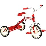 A time-honored children's toy tradition, the Classic Tricycle has cool retro styling including shiny chrome handlebars, a chrome fender and a nostalgic ringing bell. The sturdy steel construction means this is one trike that's built to last. The durable steel spoked wheels with real rubber tires can handle a variety of terrains. The seat adjusts to accommodate children of different sizes. For children 2 to 4 years of age.