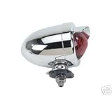 This vintage looking tail light will make your cruiser or OCC bicycle look retro. Nice medium size rear light with visor. The light measures 3-1/2" long by 3" tall. You can use this light as a dummy light for just looks or it's already wired to be hooked up to your generator or battery pack and is fully functional. Bulb is 12V10W. Brand new reproduction light, all metal and shinny chrome. Red lens.